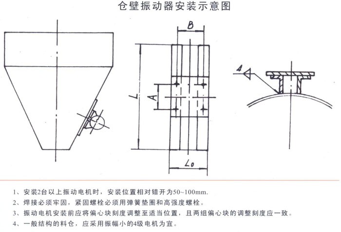 1、安裝2臺以上振動電機時,安裝位置相對錯開為50~100mm。