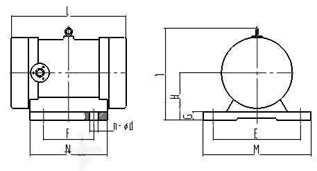 | 型號 | 激振力(KN) | 功率(kw) | 電流(A) | 振頻(r/min) | 安裝尺寸(mm) | 外形尺寸(mm) | 重量(Kg) | ||||||||