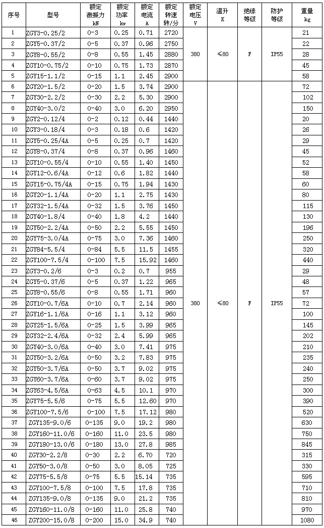 ZGY系列振動電機(jī)技術(shù)參數(shù):