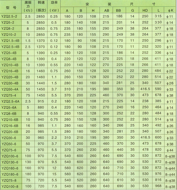 YZQ系列振動電機詳細參數(shù):